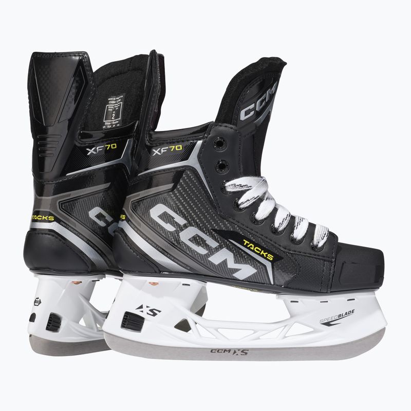 Łyżwy CCM Tacks XF70 INT oferują komfort i wydajność od pierwszego założenia. Ergonomiczna konstrukcja z kompozytu 2D Metaframe, pianka ADPT Memory i język Metatomic Tritech gwarantują wygodę i wsparcie podczas gry na lodzie.