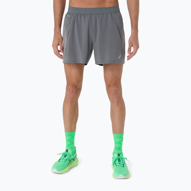 Spodenki do biegania męskie ASICS Road 5IN clay grey/steel grey/illuminate green (2011D247-020)