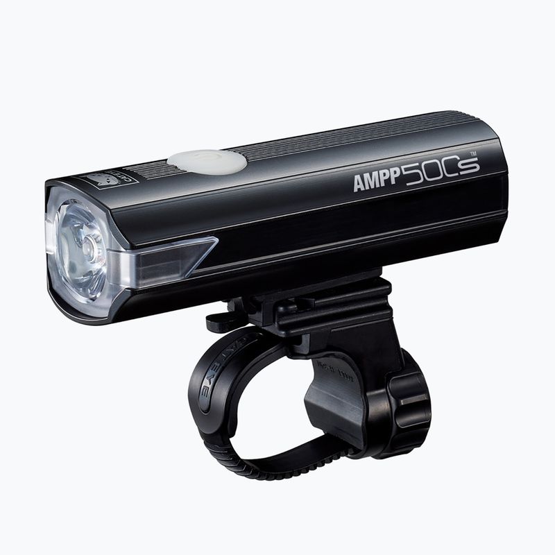 Lampka rowerowa przednia CatEye AMPP 500S (HL‑EL085SRC) – wszechstronna i kompaktowa lampka zapewniająca dobrą widoczność i bezpieczeństwo na trasie, z mocnym światłem, kilkoma trybami świecenia, łatwym montażem na kierownicy oraz solidną konstrukcją, idealna do miejskich dojazdów i wycieczek.