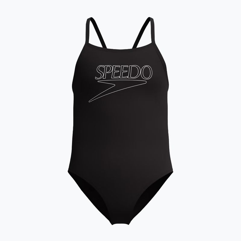 Wytrzymały strój pływacki jednoczęściowy Speedo Endurance+ Logo Thinstrap zapewnia swobodę ruchów i długotrwałą odporność na chlor. Lekka konstrukcja oraz cienkie ramiączka gwarantują komfort podczas treningów i zabaw w wodzie, idealny dla aktywnych dzieci.