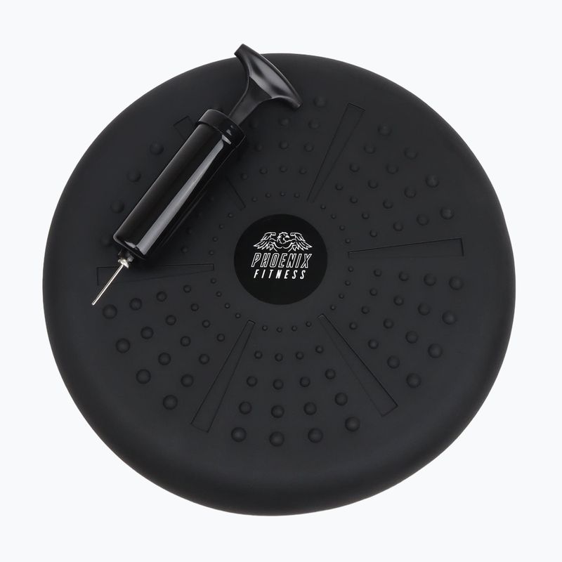 Dwustronna poduszka Phoenix Fitness 33 cm angażuje mięśnie głębokie, poprawia równowagę, koordynację i postawę. Ma gładką i wypustkowaną powierzchnię oraz regulowaną niestabilność dzięki pompce w zestawie – idealna do fitnessu, biura, rehabilitacji i codziennego siedzenia.