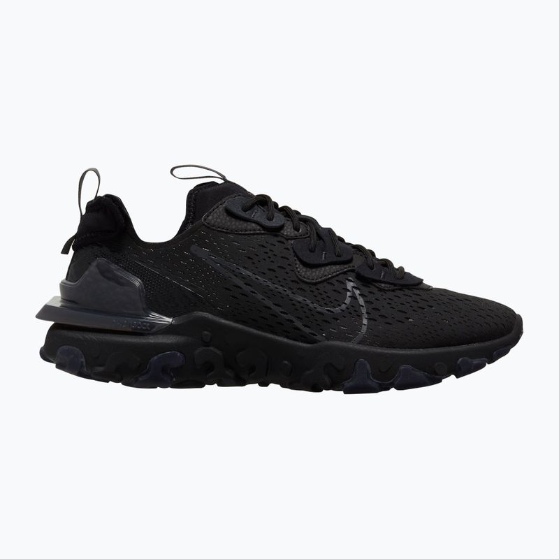 Nike React Vision – nowoczesne buty z warstwową, tekstylno-syntetyczną cholewką i oddychającą siateczką dla maksymalnego komfortu. Gruba podeszwa React Foam i wyściełany język gwarantują wygodę, a czarna kolorystyka z logo Swoosh podkreśla stylowy wygląd.