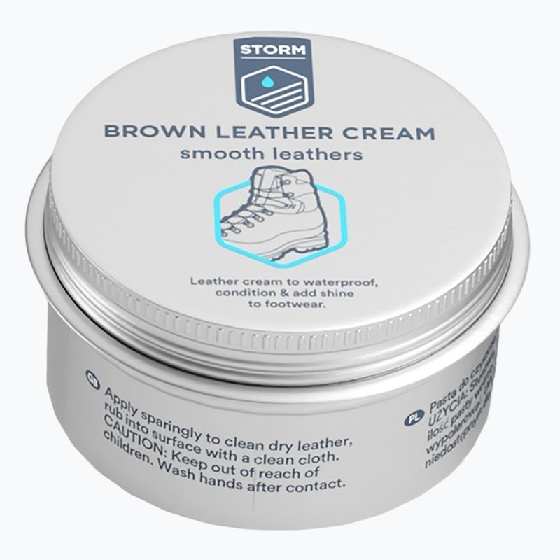 Storm Leather Cream to preparat do pielęgnacji skóry, który odżywia, zmiękcza i chroni przed wilgocią. Przywraca elastyczność oraz poprawia wygląd obuwia i akcesoriów skórzanych, przedłużając ich trwałość.