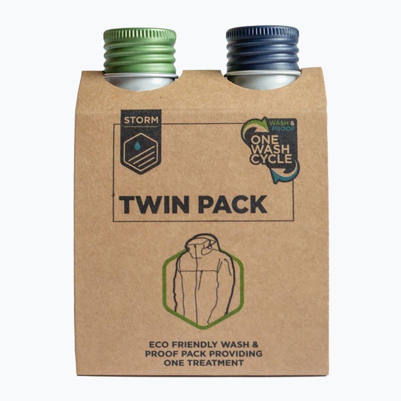 Storm Apparel Wash Twin Pack to zestaw dwóch płynów do prania odzieży technicznej. Skutecznie usuwa zabrudzenia, zachowując oddychalność i właściwości materiałów. Idealny do ubrań outdoorowych, sportowych i membranowych.