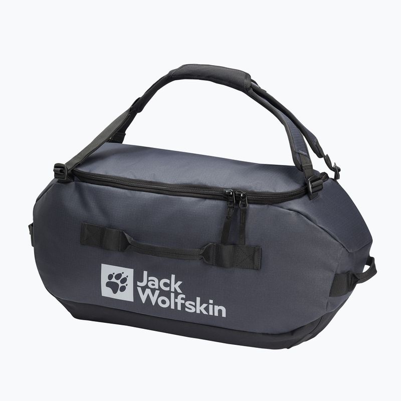 Wytrzymała torba podróżna Jack Wolfskin All-In Duffle 45 l to idealny wybór na krótsze wyjazdy. Z pojemnością 45 litrów, oferuje dużo miejsca na niezbędne rzeczy, a odporna na warunki atmosferyczne tkanina zapewnia trwałość. Wygodne uchwyty i odpinany pasek na ramię ułatwiają transport.